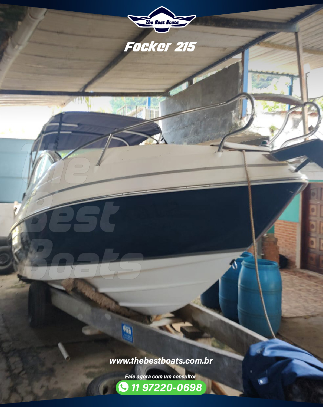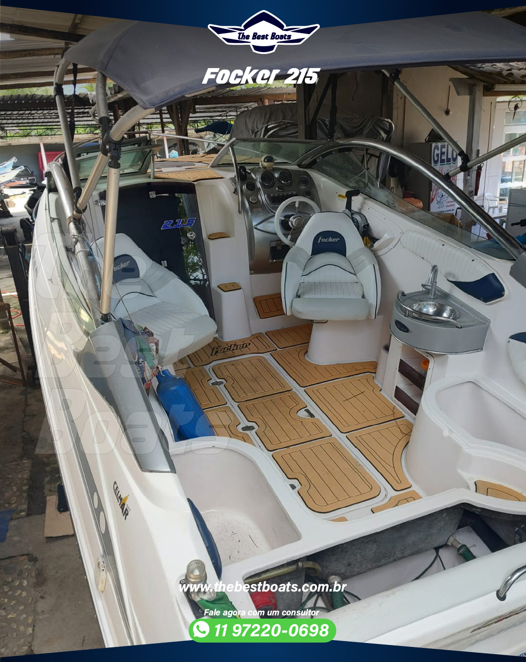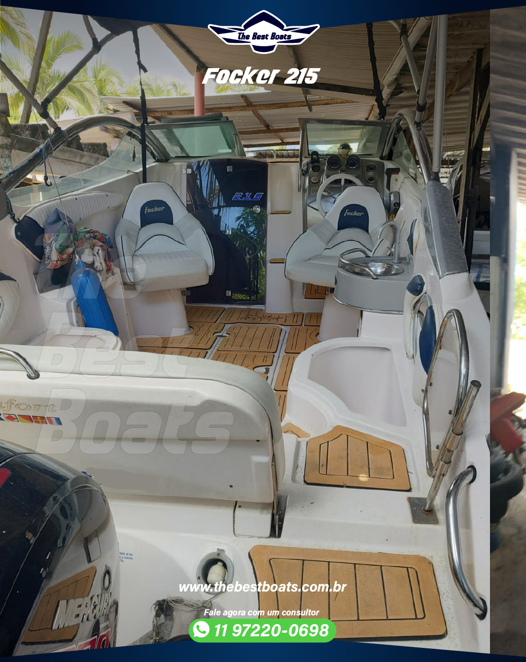 🛥⛵⚓ Focker 215 🛳⛵⚓ 🚀 Motor Mercury 150HP – 4T ProX5 Casco Ano: 2009 Motor Ano: 2011 🕛 173h ⛽ Gasolina – Teka – Direção Hidráulica